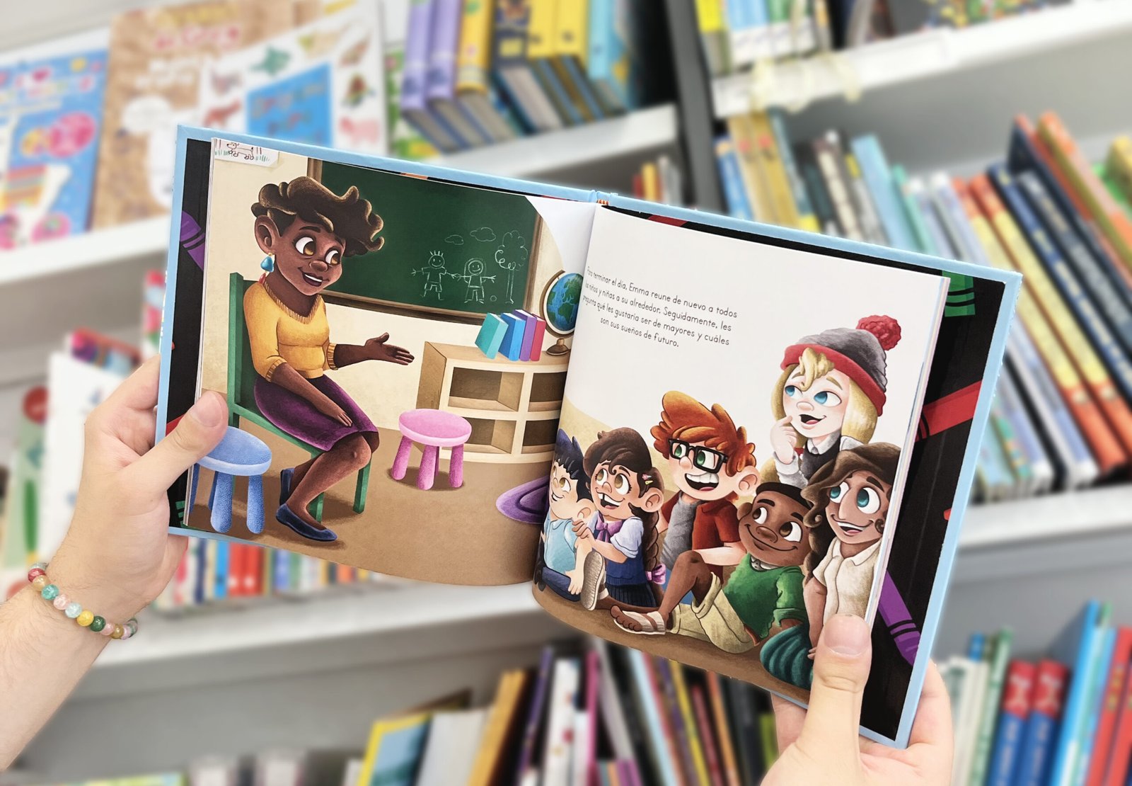 Es un álbum ilustrado, dirigido a un target de entre seis y nueve años de cualquier género, procedencia o situación económica, cuya narrativa está protagonizada por niños y niñas de distintas partes del mundo que interactúan, conversan y comparten aspectos de la realidad que viven en sus países, tratando temas como sus asignaturas favoritas, lo que aprenden en clase, los juegos a los que juegan, las festividades que celebran o lo que quieren ser de mayores, entre otras cosas.